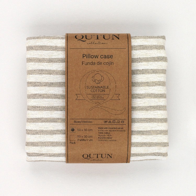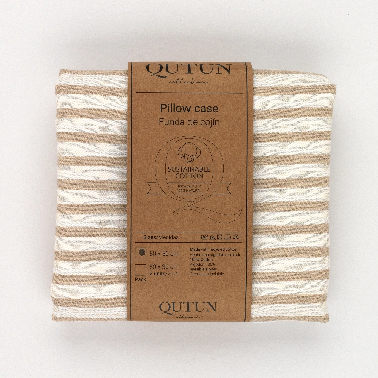 Funda de cojín fabricada con algodón natural reciclado y cremallera invisible. Se trata de un complemento ideal para decorar cualquier estancia.