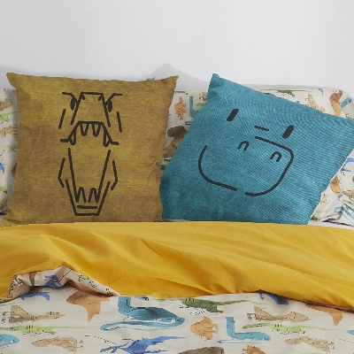 Fundas de cojín de 40x40 cm con las simpáticas caras de dos dinosaurios, a juego con el dúo de funda nórdica Saurios