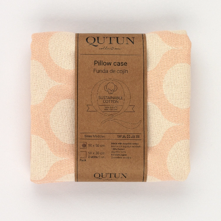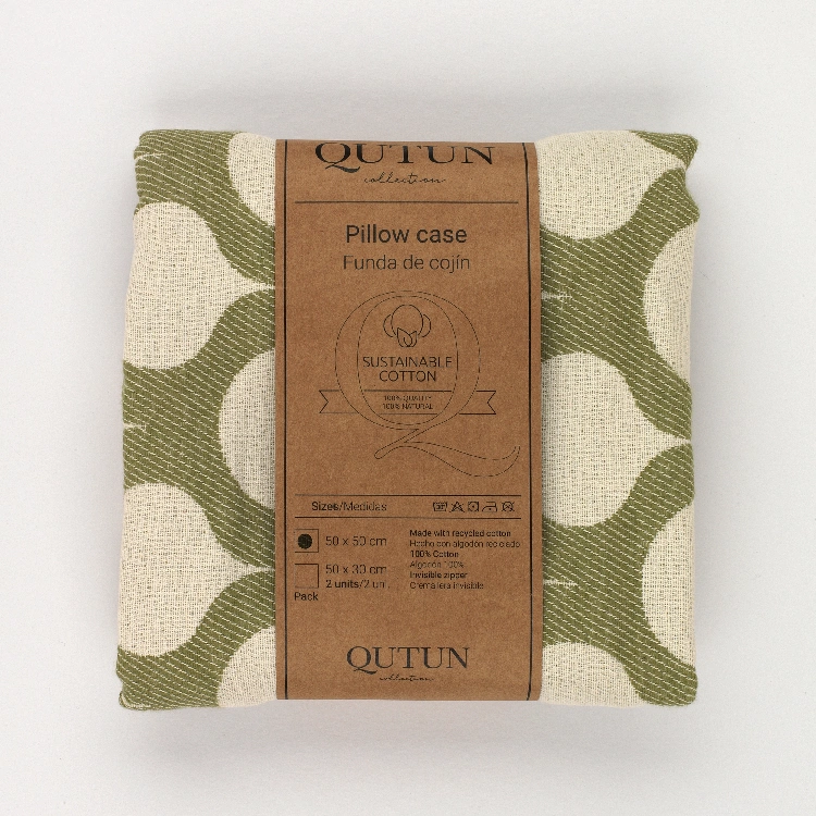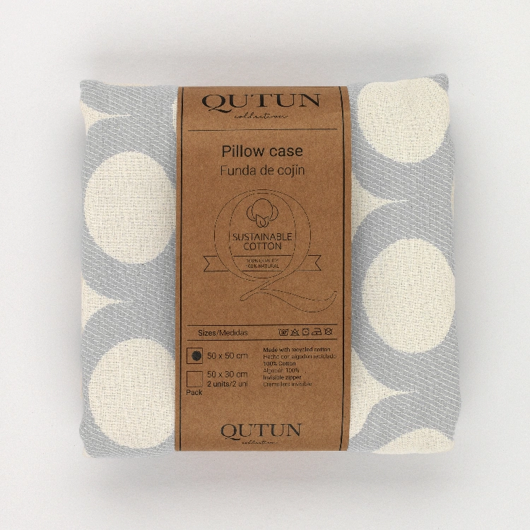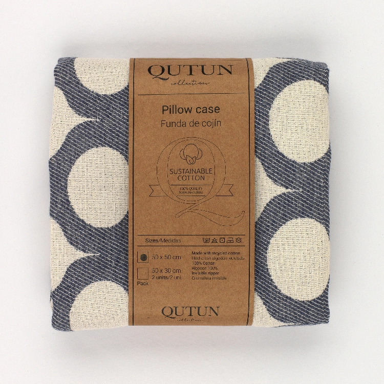 Funda de cojín fabricada con algodón natural reciclado y cremallera invisible. Se trata de un complemento ideal para decorar cualquier estancia.