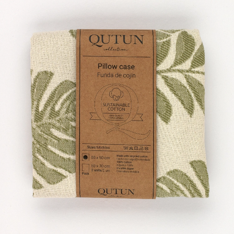 Funda de cojín fabricada con algodón natural reciclado y cremallera invisible. Se trata de un complemento ideal para decorar cualquier estancia.