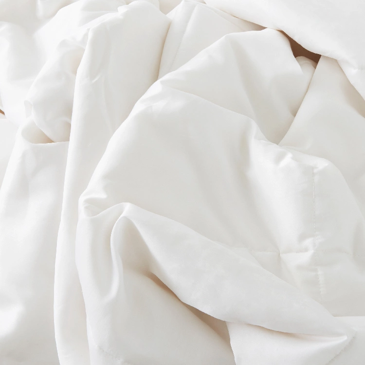 Relleno de funda nórdica con el interior de fibra de algodón, acolchado con perímetro de 25 cm y cuadros en el interior. El exterior es de satén blanco de 300 hilos